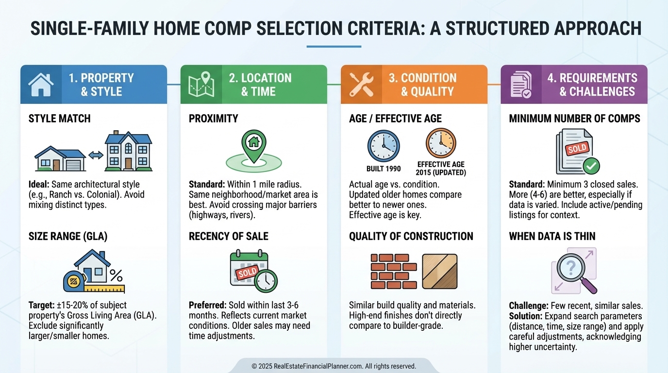 Evaluate comp quality. Similarity, proximity, and recency.