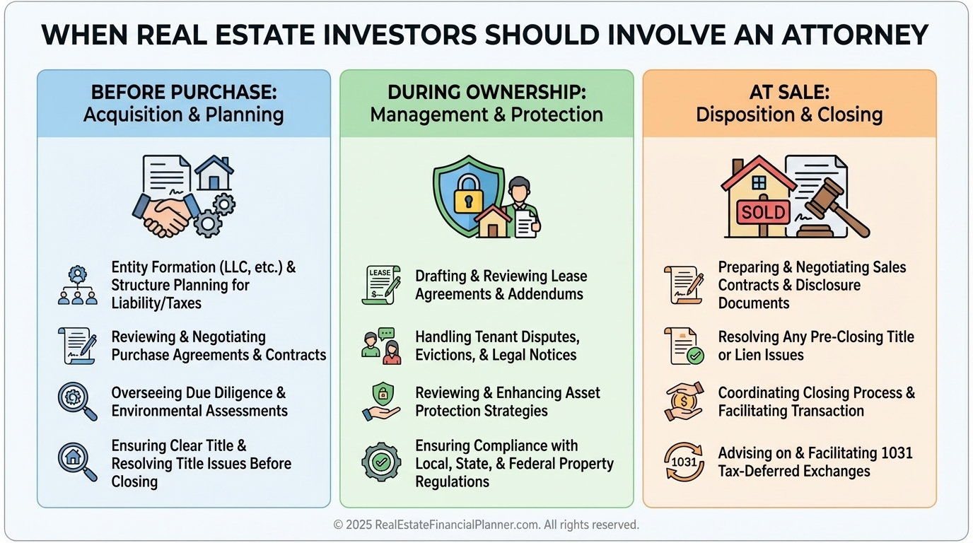 This is when entity setup, contract review, and title advice matter most.