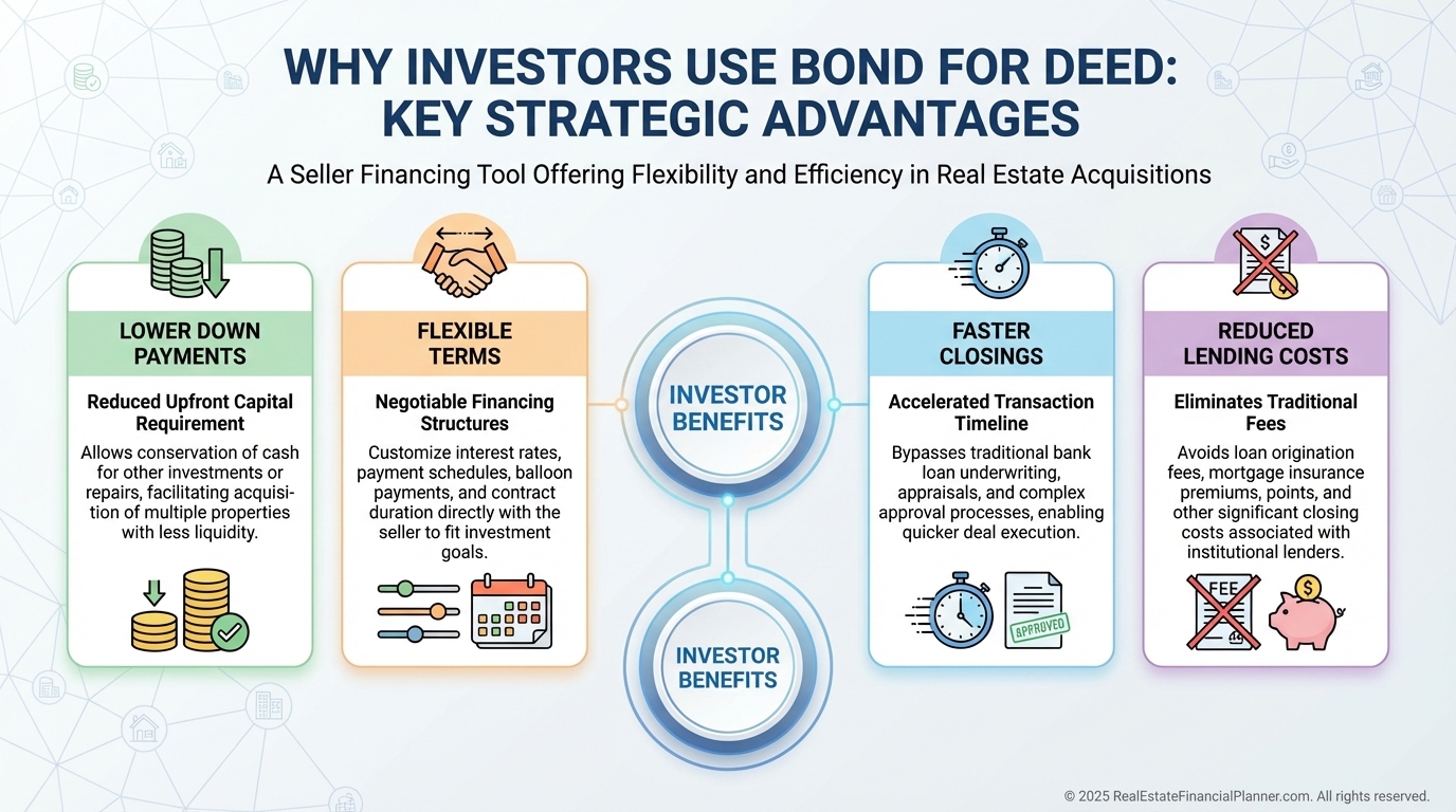 When I help clients evaluate creative financing deals, bond for deed is always on the short list—but only when it’s structured deliberately and analyzed correctly.