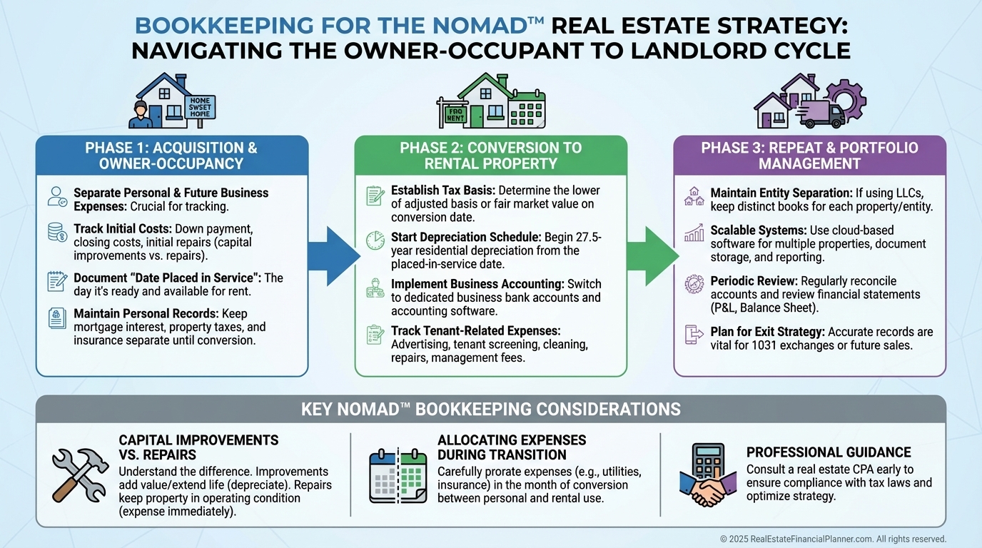 A bookkeeper ensures the transition from personal residence to rental is documented cleanly.