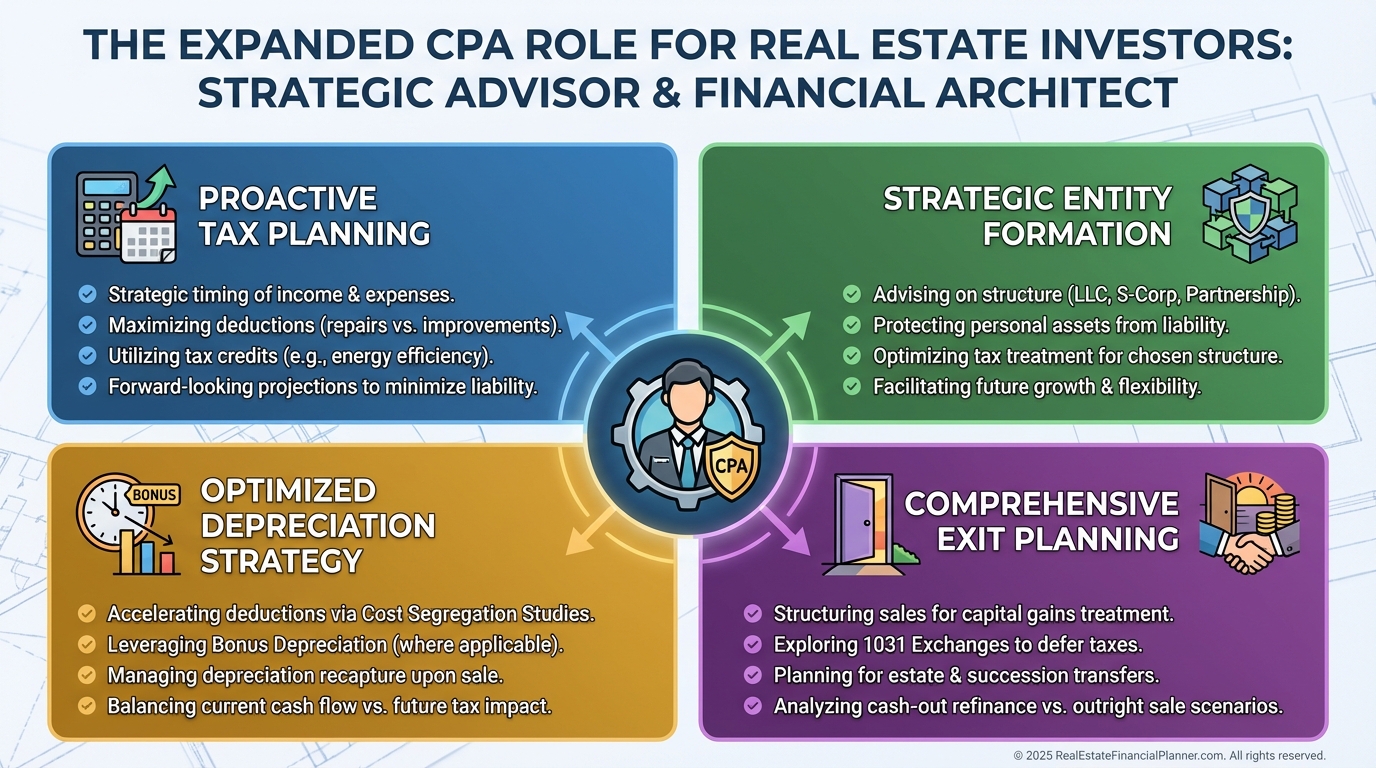 When I help clients analyze deals or review portfolios, one of the first questions I ask is who their CPA is and how involved they are before decisions get made.
