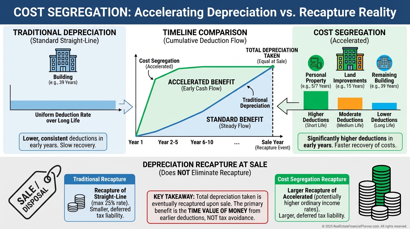 If you sell early, cost segregation can actually increase the size of your recapture hit.