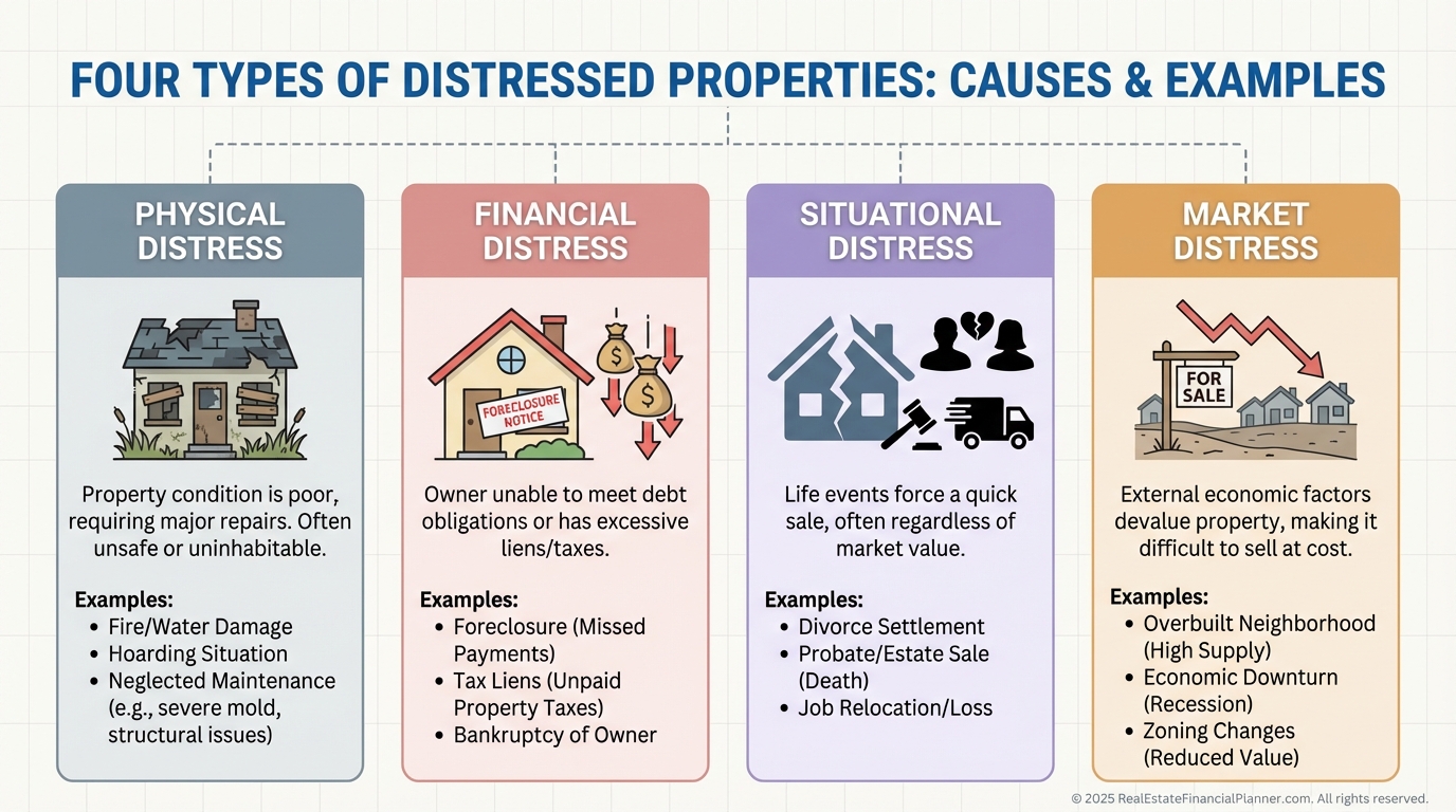 After rebuilding my own portfolio following bankruptcy and foreclosures, I learned this lesson the hard way. Distress is not about condition. Distress is about motivation, constraints, and pressure.