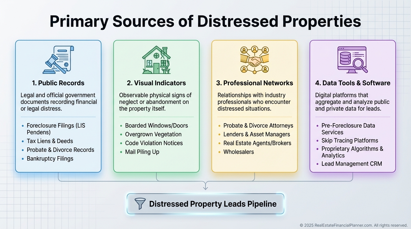 When I help investors build deal flow, we focus on sources that reveal motivation before listing photos exist.