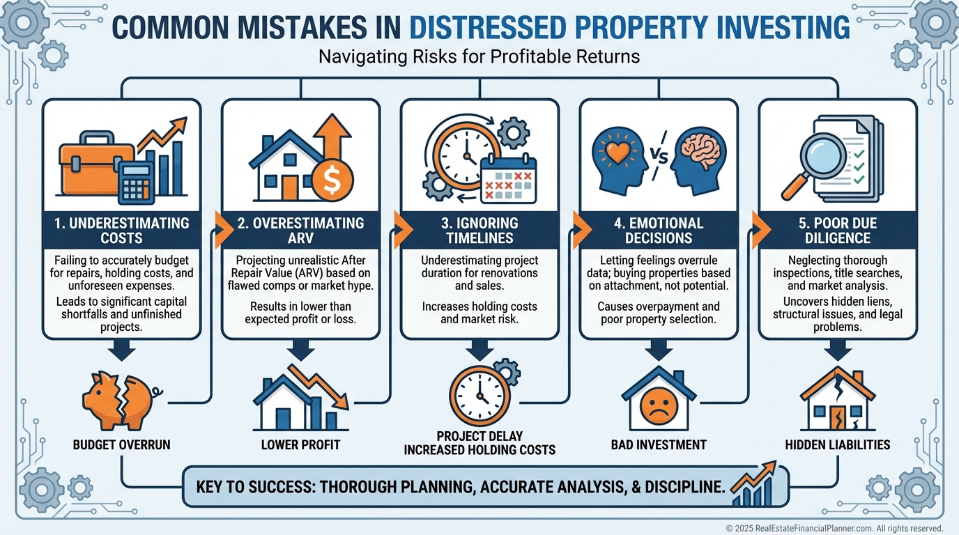 Skipping inspections, trusting surface-level repairs, and assuming timelines will cooperate destroys returns.