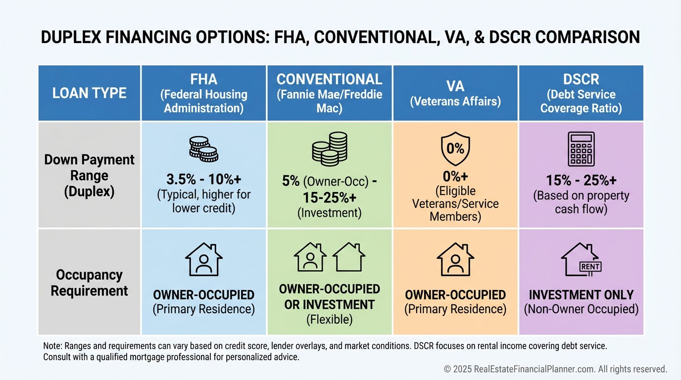 That legal classification matters more than most investors realize. Duplexes fall under residential lending rules because they are one-to-four-unit properties. That single detail drives everything else: financing terms, down payments, qualifying rules, and exit options.