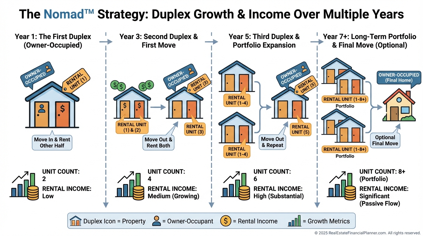 When I model long-term outcomes, Nomad™ duplex investors often reach the same unit count in half the time with less total cash invested.