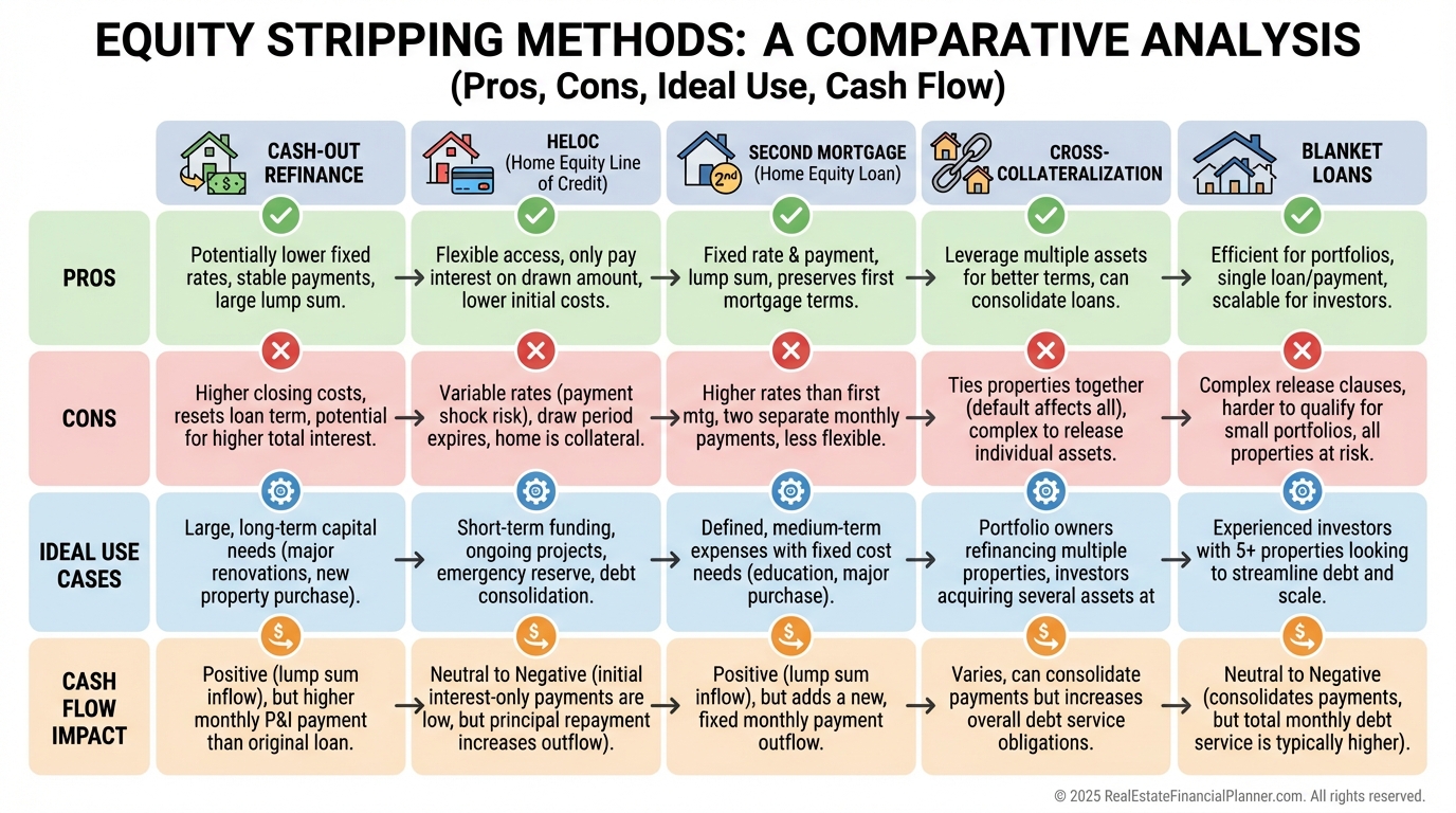 Equity stripping is the deliberate process of converting illiquid real estate equity into deployable capital while you keep ownership of the property.