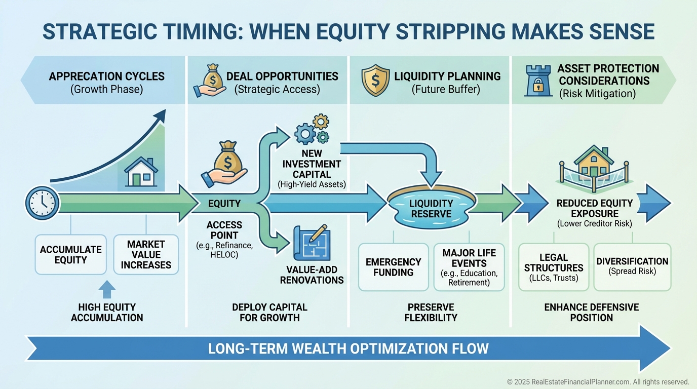 Equity stripping, when done conservatively and intentionally, turns real estate from a passive holding into an active wealth engine.