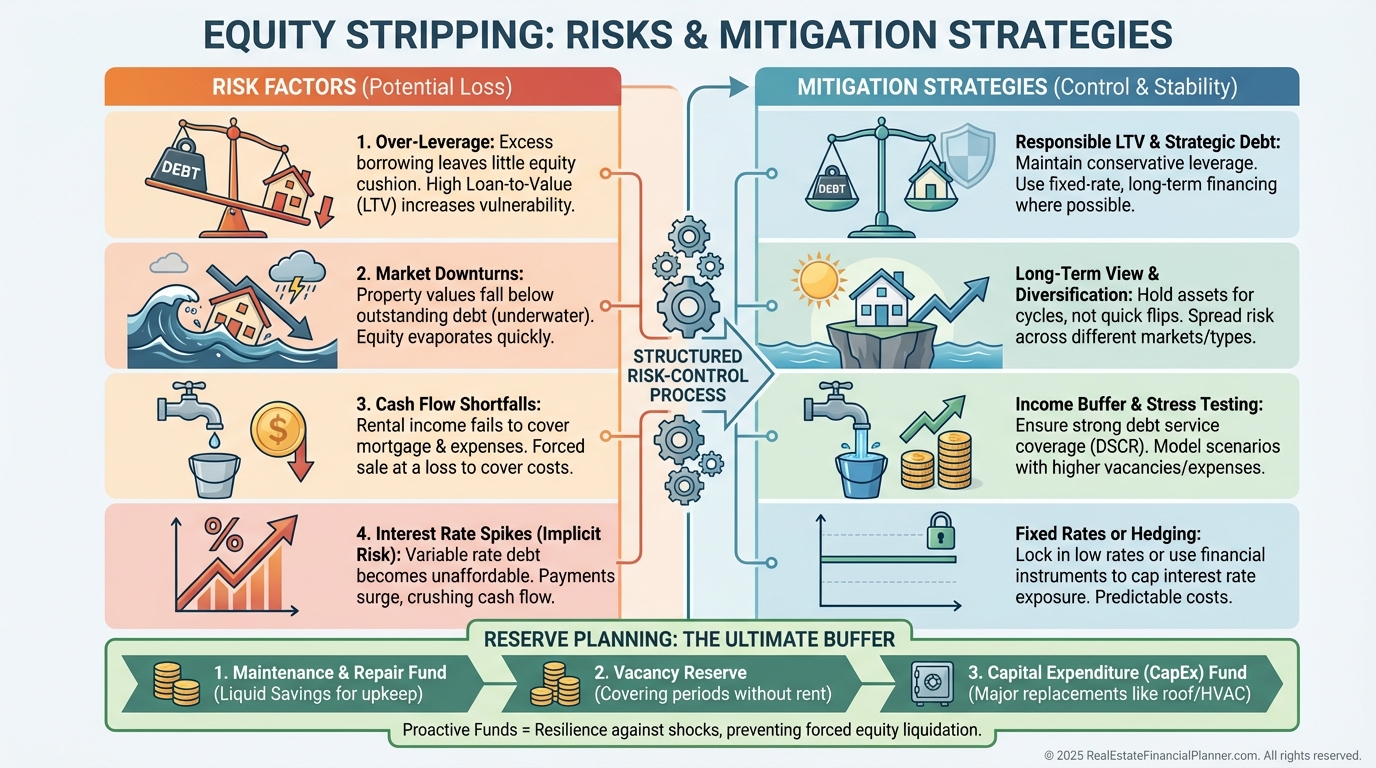 Risk comes from poor execution, not leverage itself. Proper equity stripping often reduces overall risk by diversifying where your capital lives.