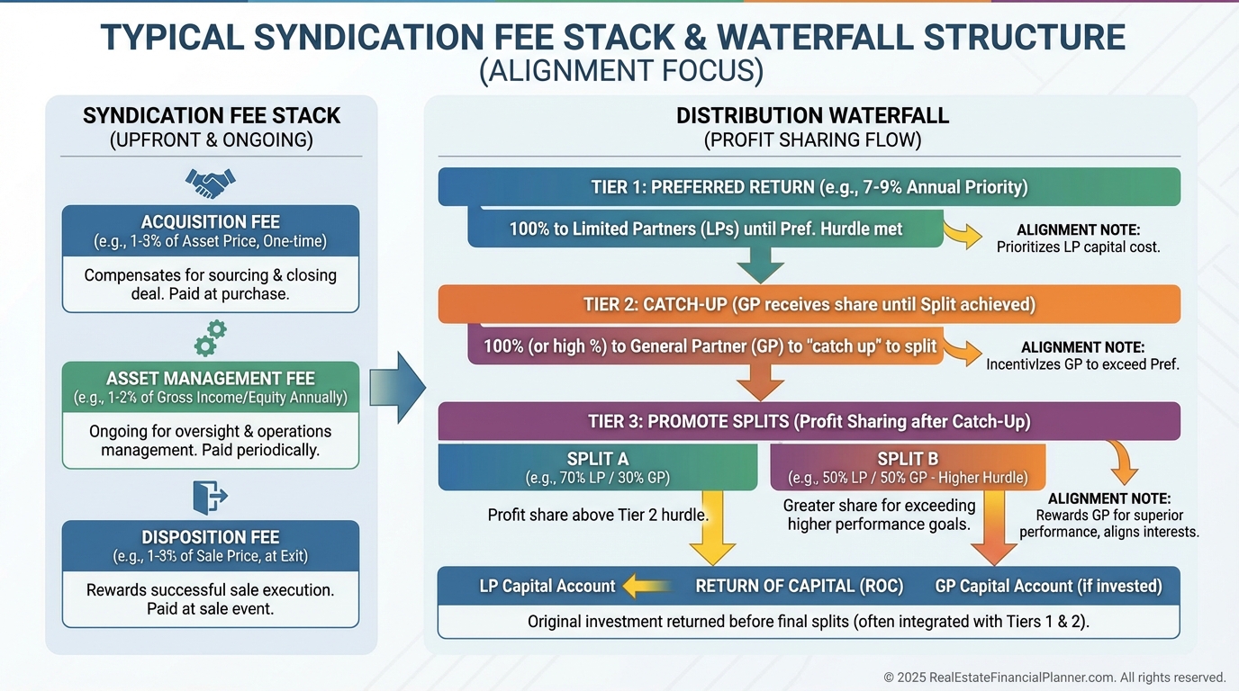 I prefer GPs who co‑invest 5–10% of the equity and take most upside through promote, not front‑loaded fees.