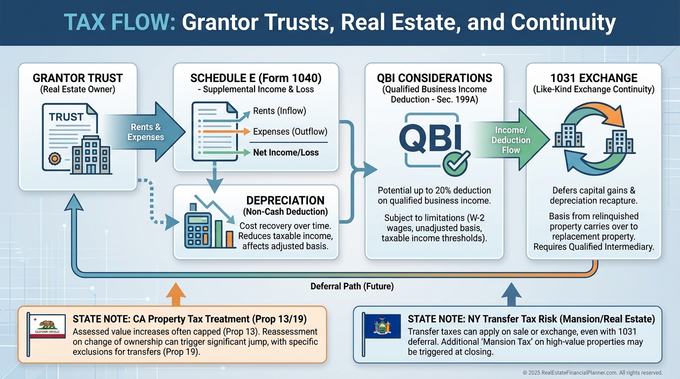 1031s generally work cleanly with grantor trusts because the taxpayer is the same person; the key is consistent ownership from relinquished to replacement.