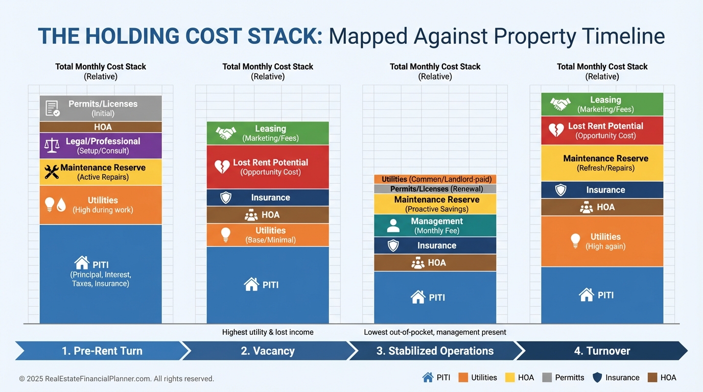 Holding costs include the unstable periods too: acquisition-to-rent, vacancy, and turnovers.