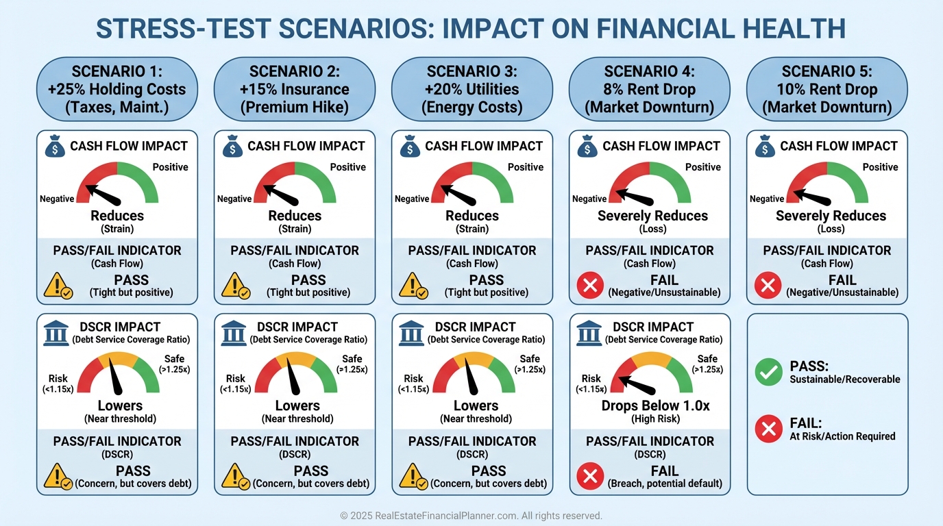 I stress-test for a 25% increase in holding costs and a 10% rent drop.