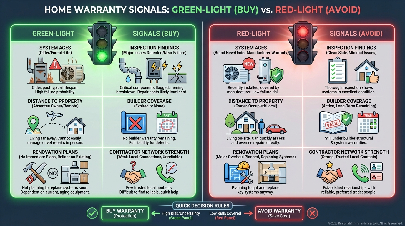 I skip warranties on flips, large renovations, and new construction under builder coverage. The timeline is wrong for the premium.