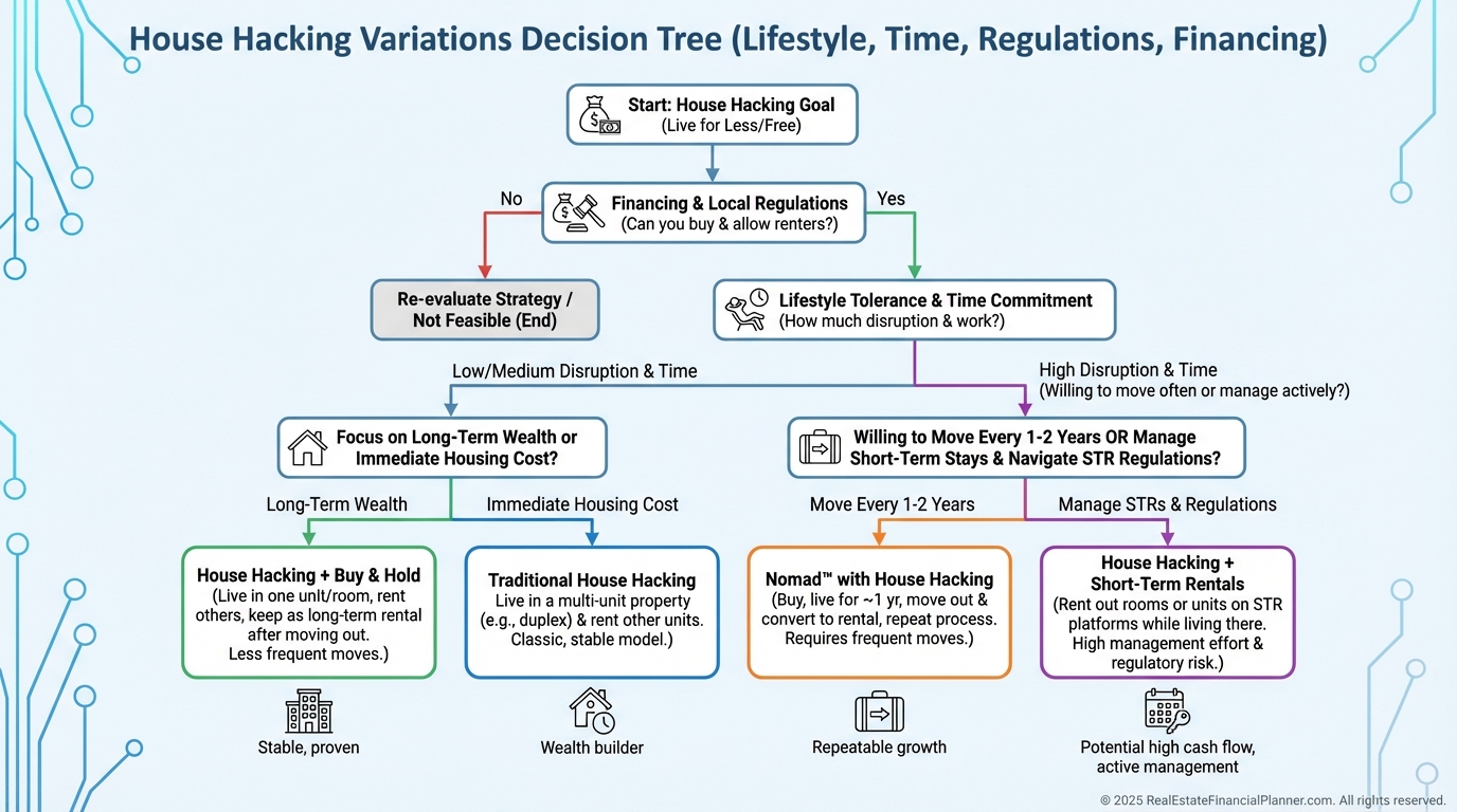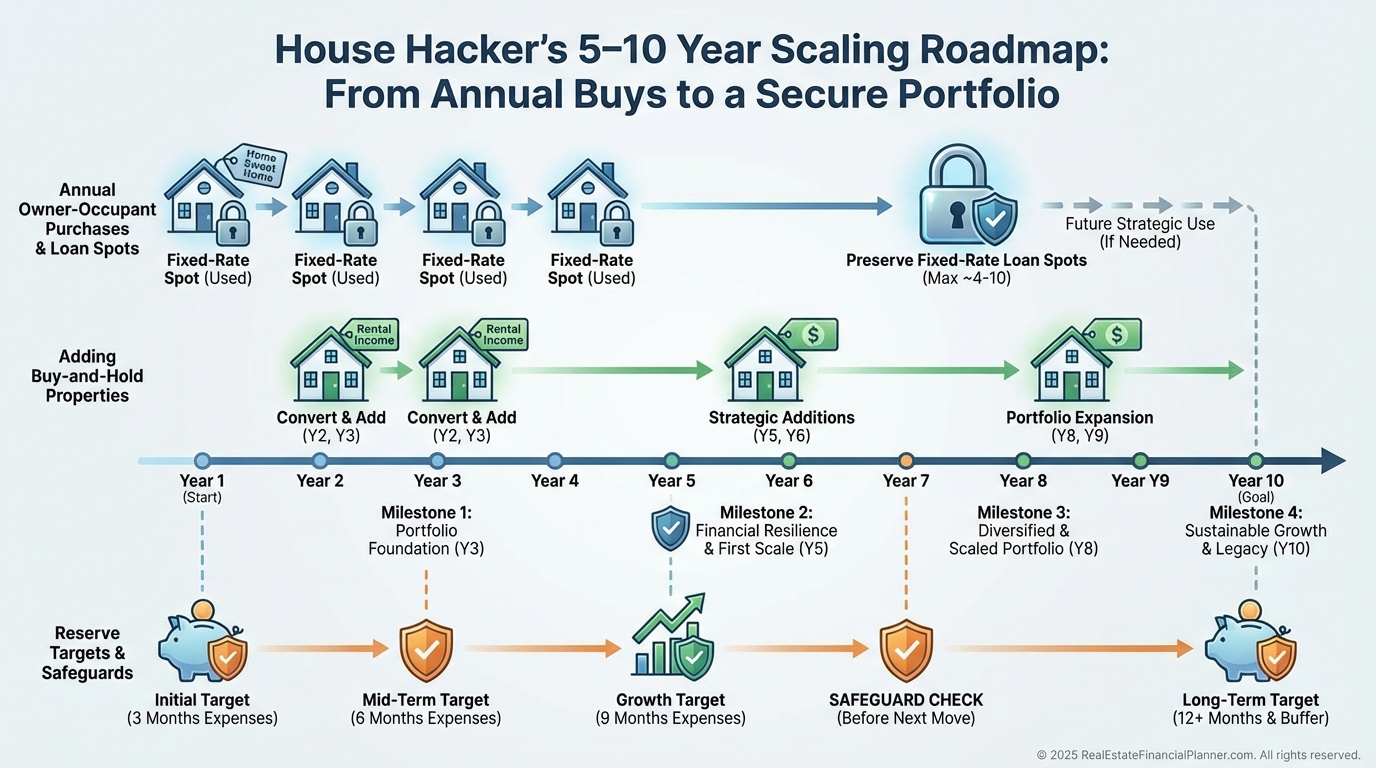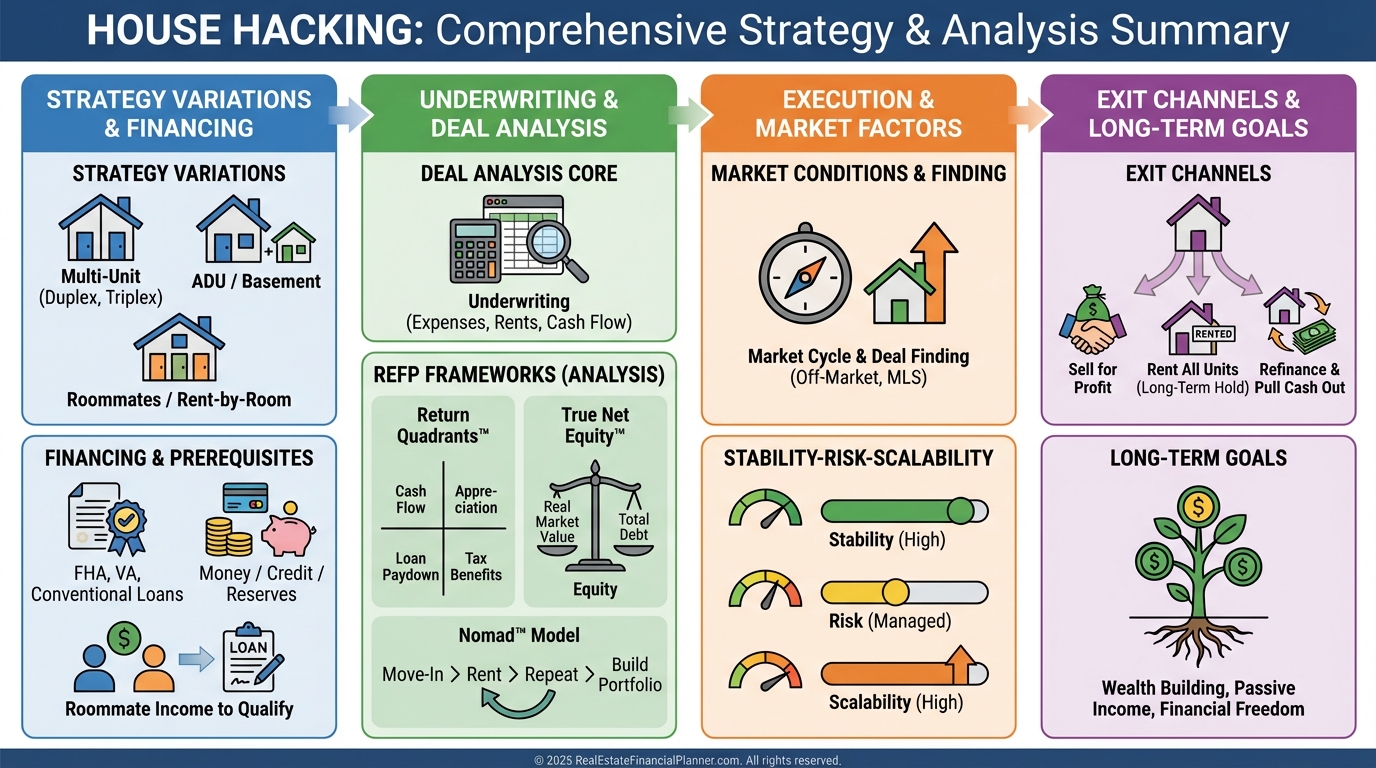House Hacking + Traditional Buy & Hold: While living in your house hack, add separate investor loans for long-term rentals to accelerate scale.