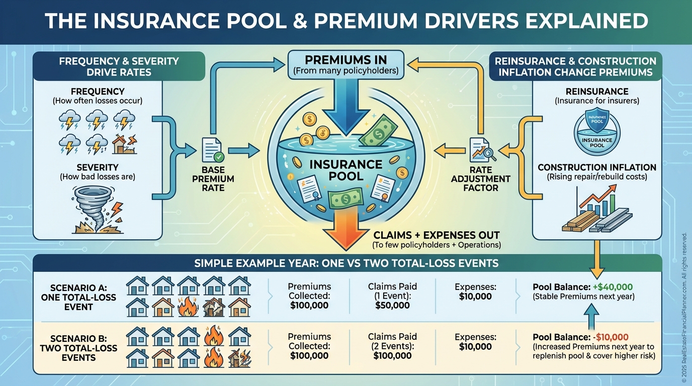 If construction, medical, or reinsurance costs rise, premiums must rise to keep the pool solvent.