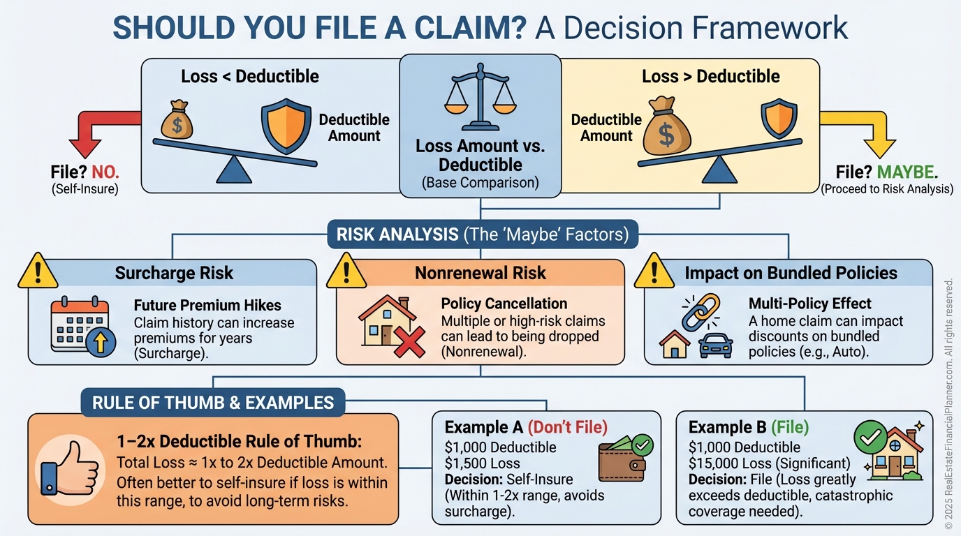If the loss is within 1–2x the deductible, I usually pay cash to protect my insurability and keep future premiums down.