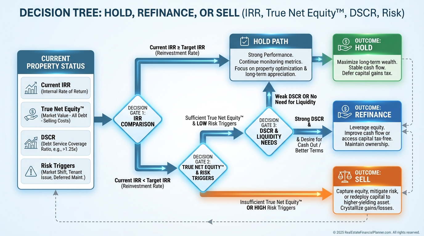 1031 exchanges are a force multiplier when guided by returns. Swapping a 6% IRR laggard into a 10% IRR performer compounds faster, especially when you anchor decisions to True Net Equity™.