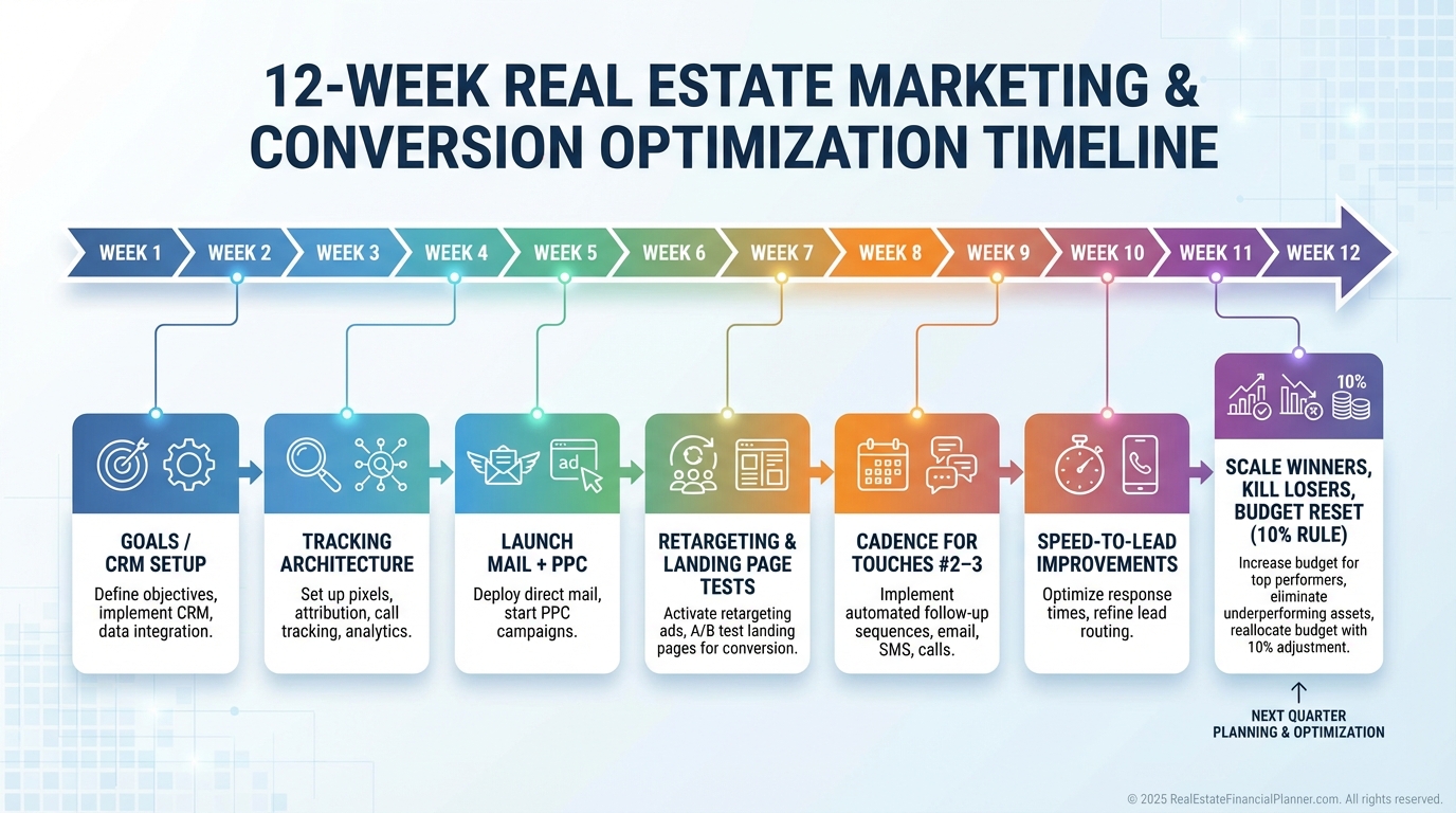 Week 7–8: Review CPL and CPA by source, improve speed-to-lead, and deploy social proof on pages.