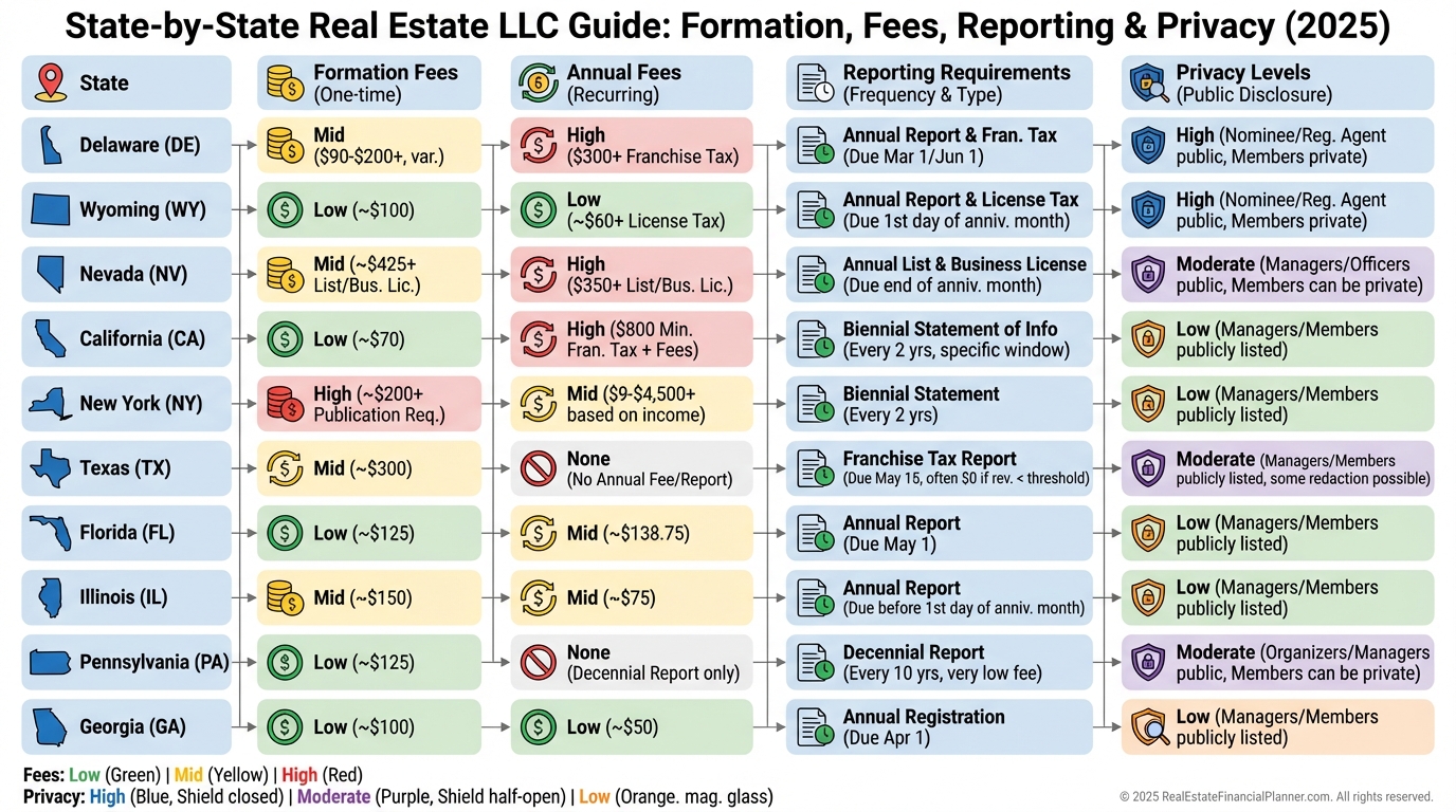 What’s inexpensive in Wyoming may be costly in California, and multi-state ownership adds filing complexity.