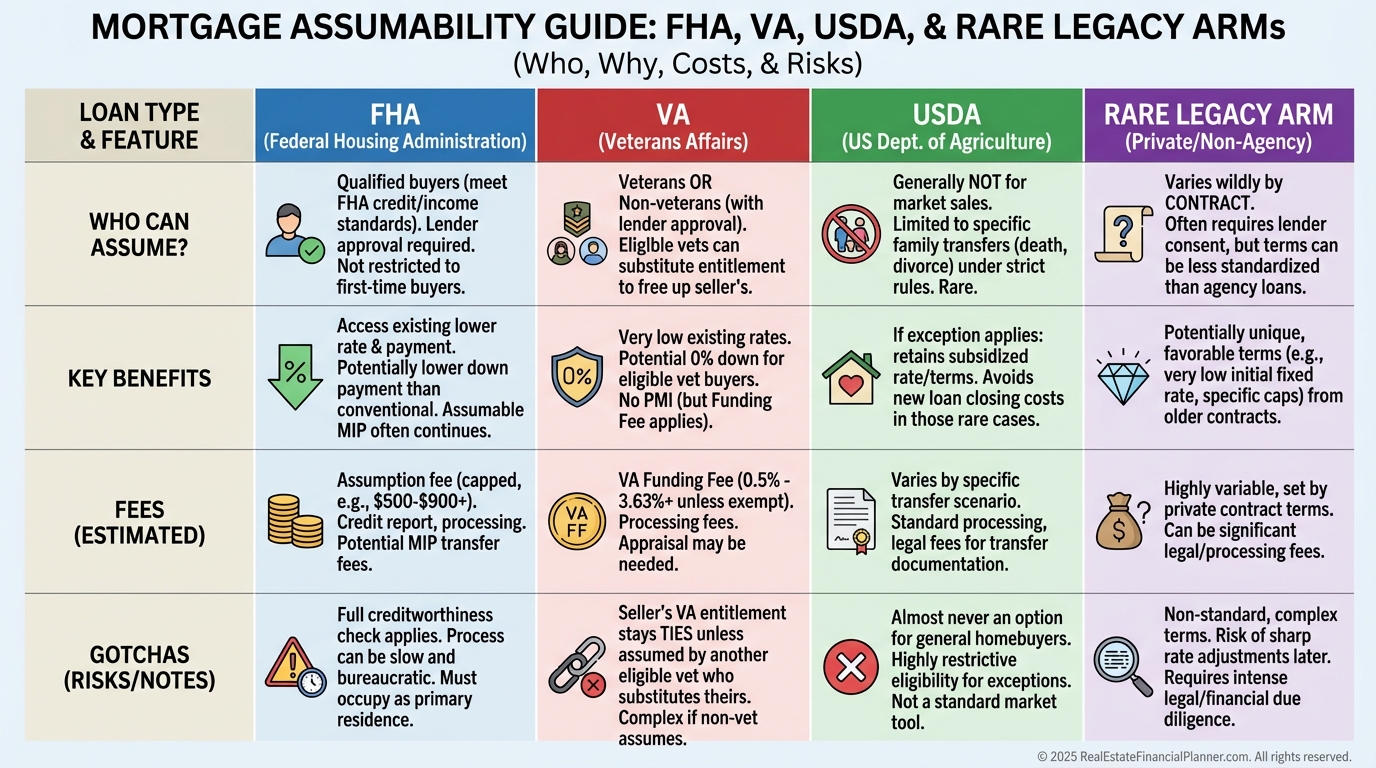 Rare legacy conventional ARMs may be assumable if the note allows it, but those are needles in haystacks.