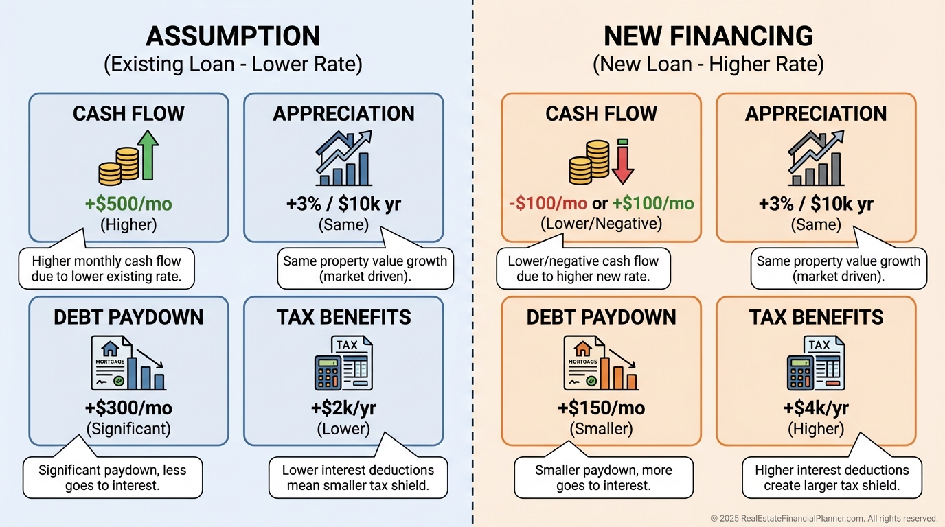 That combination is why assumptions often beat new financing even with a large cash requirement.