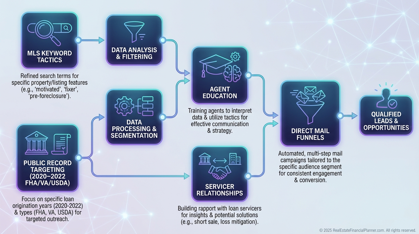 I also build a network with servicers, wholesalers, and agents, and I mail owners with FHA/VA loans explaining their hidden asset.