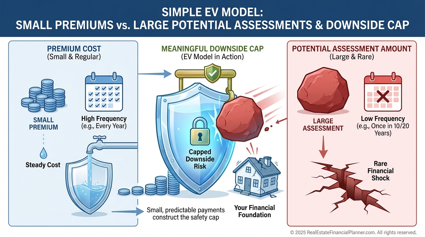If there’s even a 1-in-20-year chance of a big assessment, expected value favors buying it.