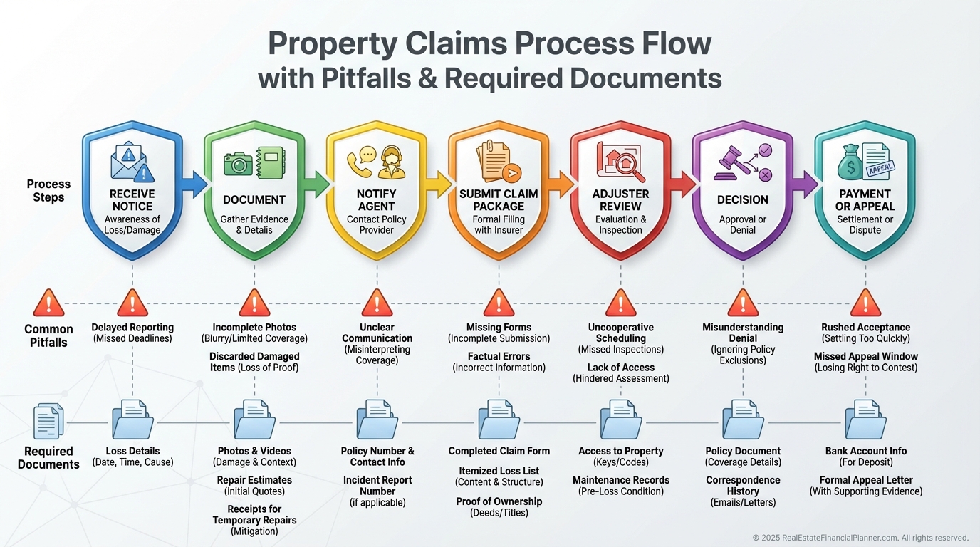 Most denials I see involve uncovered perils, assessments below your deductible, or missing documents. Close the gaps before you file.