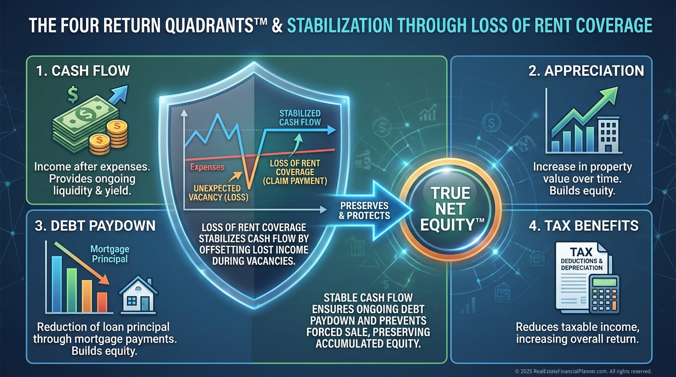 In Return Quadrants™, loss of rent coverage protects the Cash Flow quadrant.