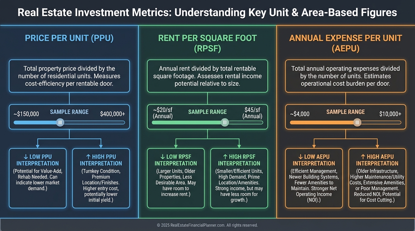 Rent per square foot exposes underperforming layouts or unit mixes.