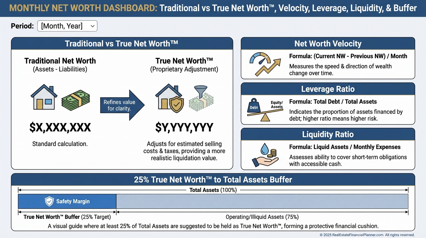 Set up monthly tracking and target a 25% True Net Worth™ to assets buffer.