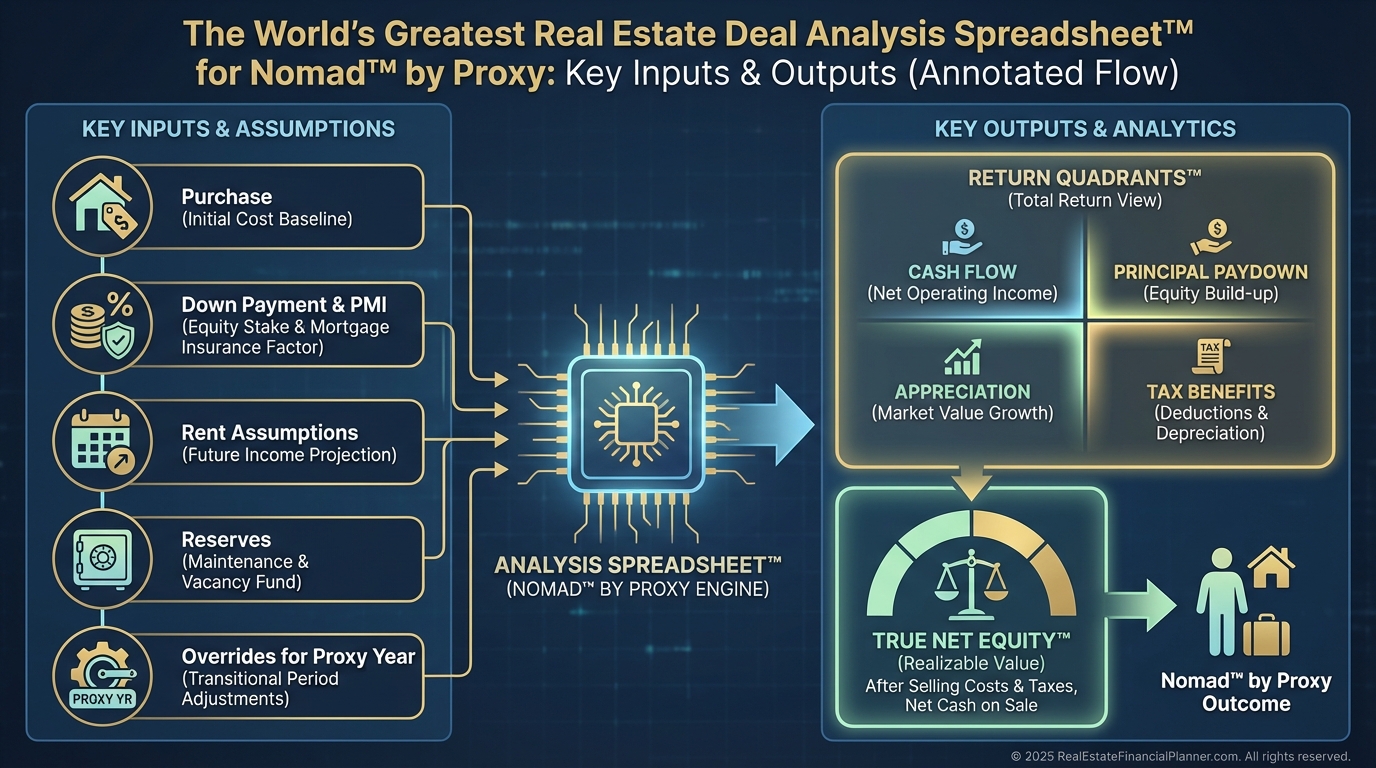 Use The World’s Greatest Real Estate Deal Analysis Spreadsheet™. It’s free and purpose-built for Nomad™ and Nomad™ by Proxy.