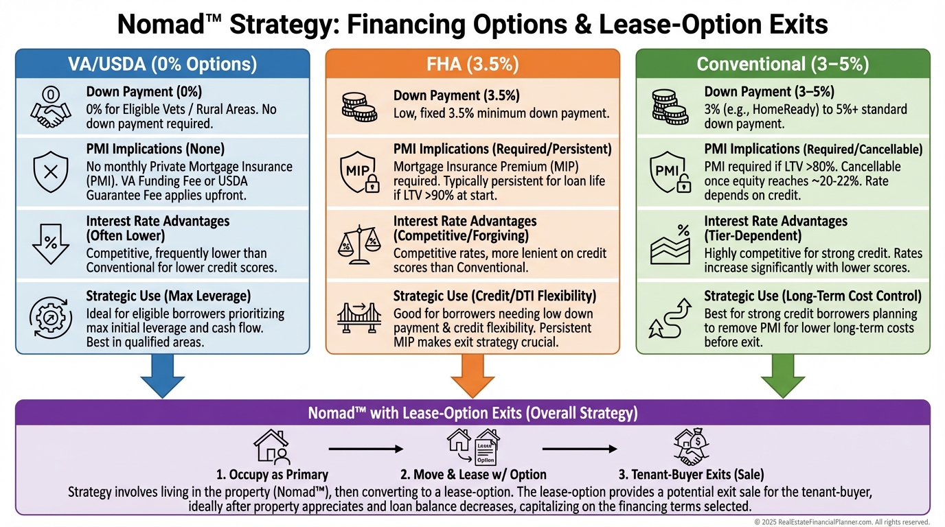 Private Mortgage Insurance is common under 20% down, but lease-option premiums often offset PMI’s drag.