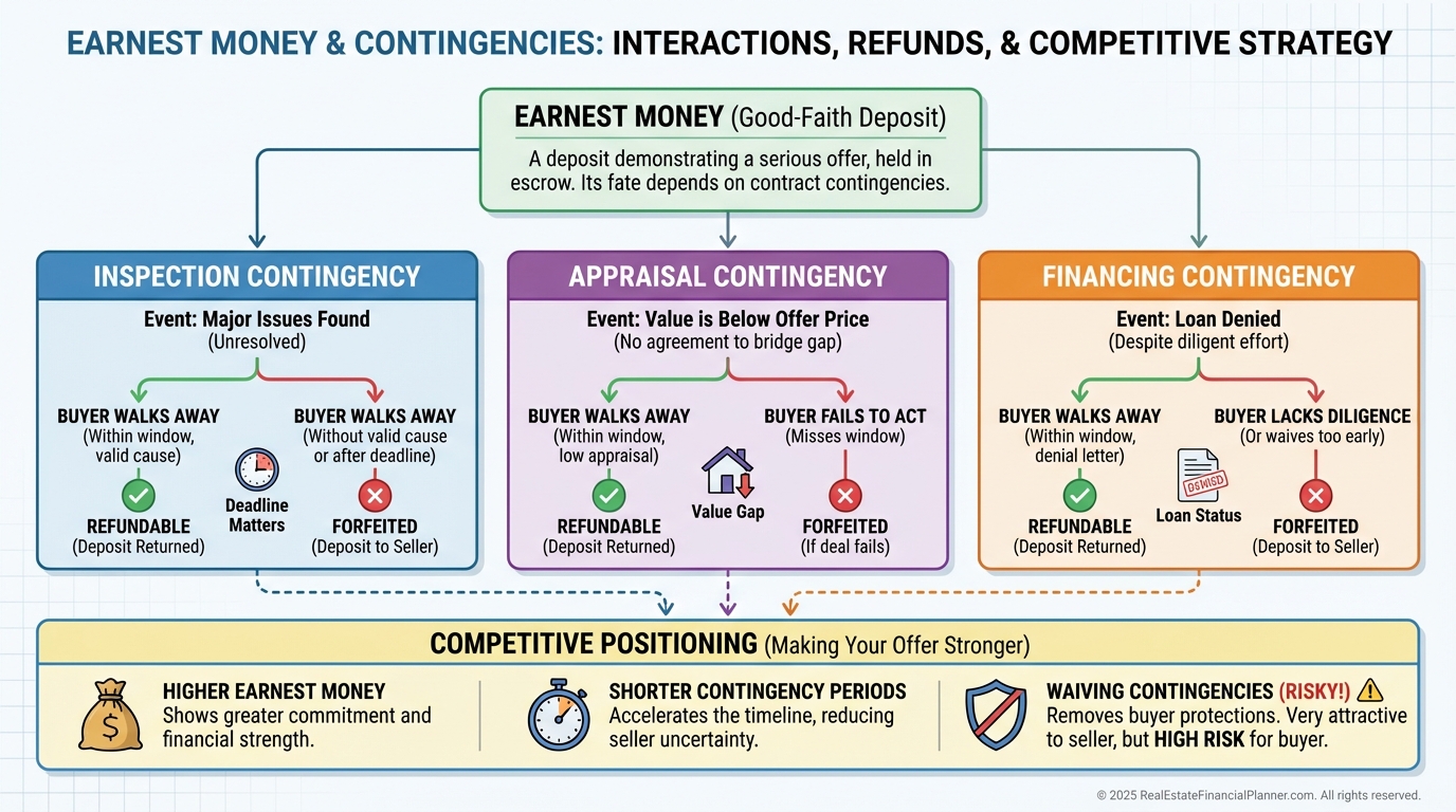 Earnest money tells the seller you’re serious, but your contingencies decide whether it’s refundable.