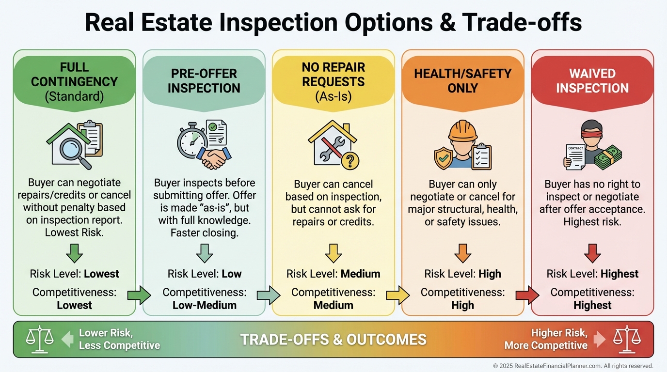 Options include pre-offer inspection, waive with no termination rights, or limit to health/safety.