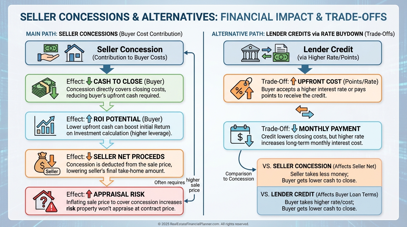 Concessions reduce your cash to close and can boost ROI, especially with small down payments.