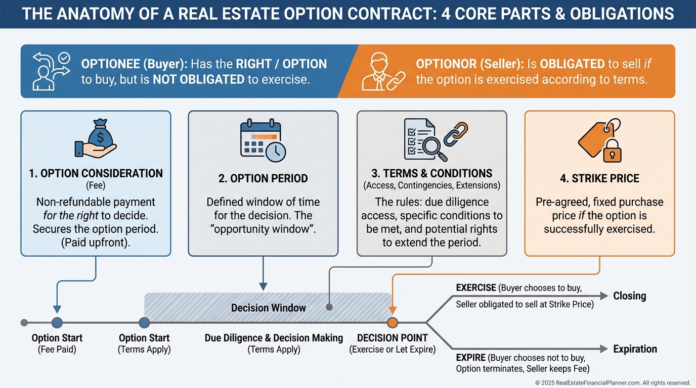 And I always align the option period with my real-world approval, funding, or resale timeline.