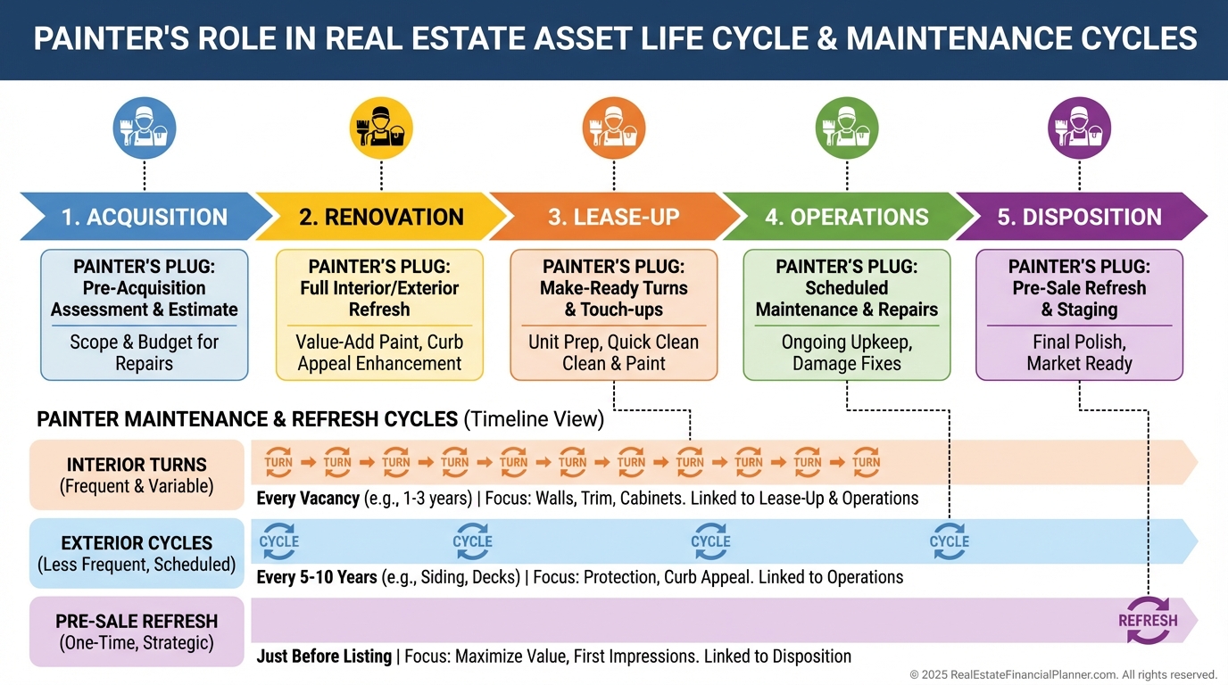 I bring painters in at three moments: pre-list turn, mid-renovation, and on a fixed exterior cycle.