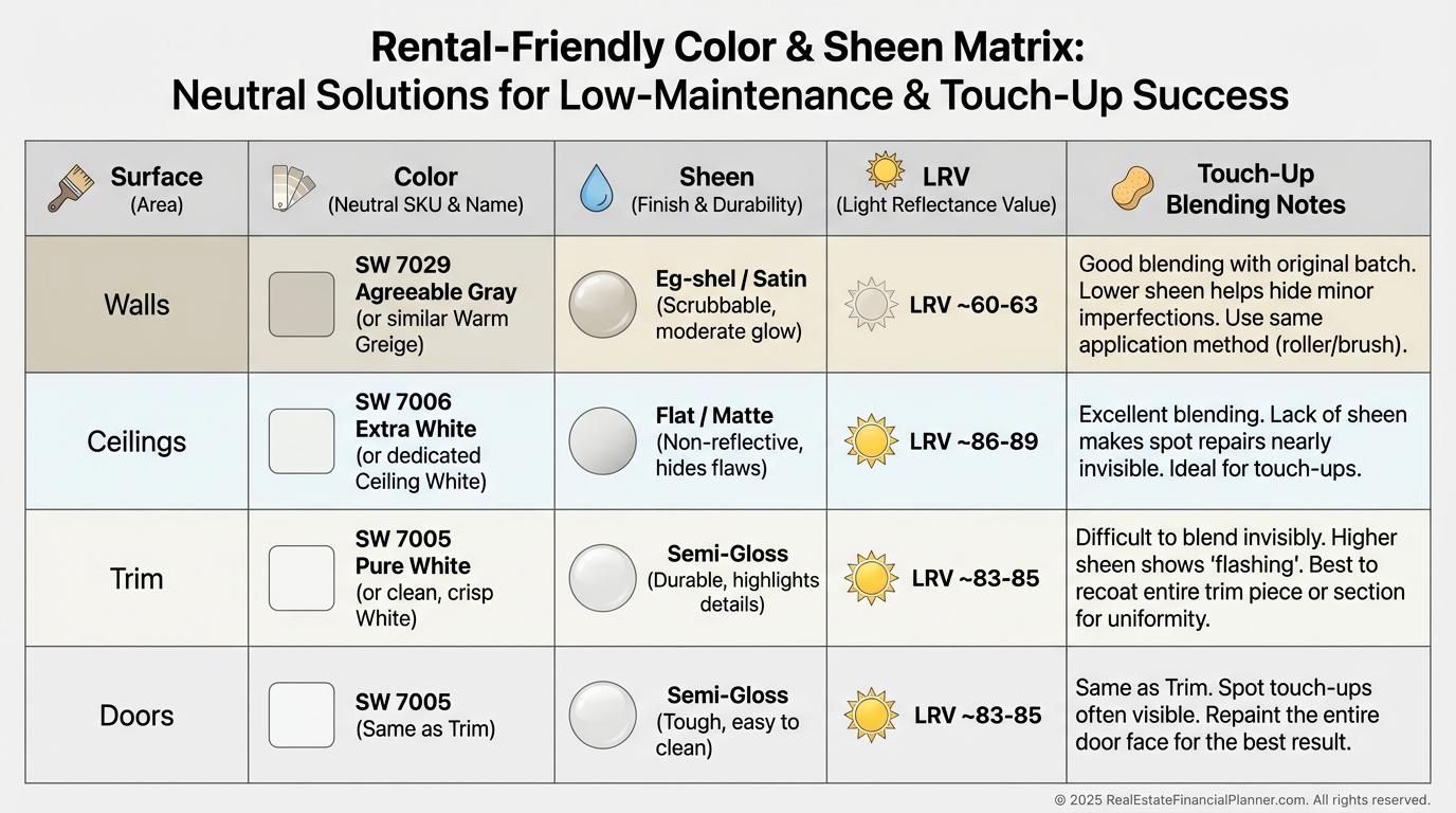 Before converting to a rental, I shift to the durable sheen matrix and touch-up-friendly colors to lower future turn costs.