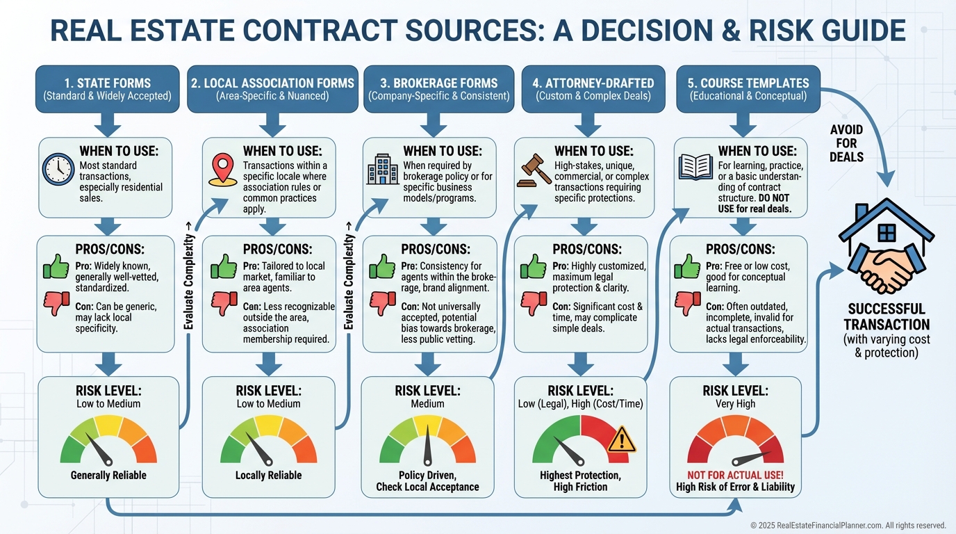 Some markets rely on local associations or brokerage-drafted forms. These typically mirror state forms with local tweaks.