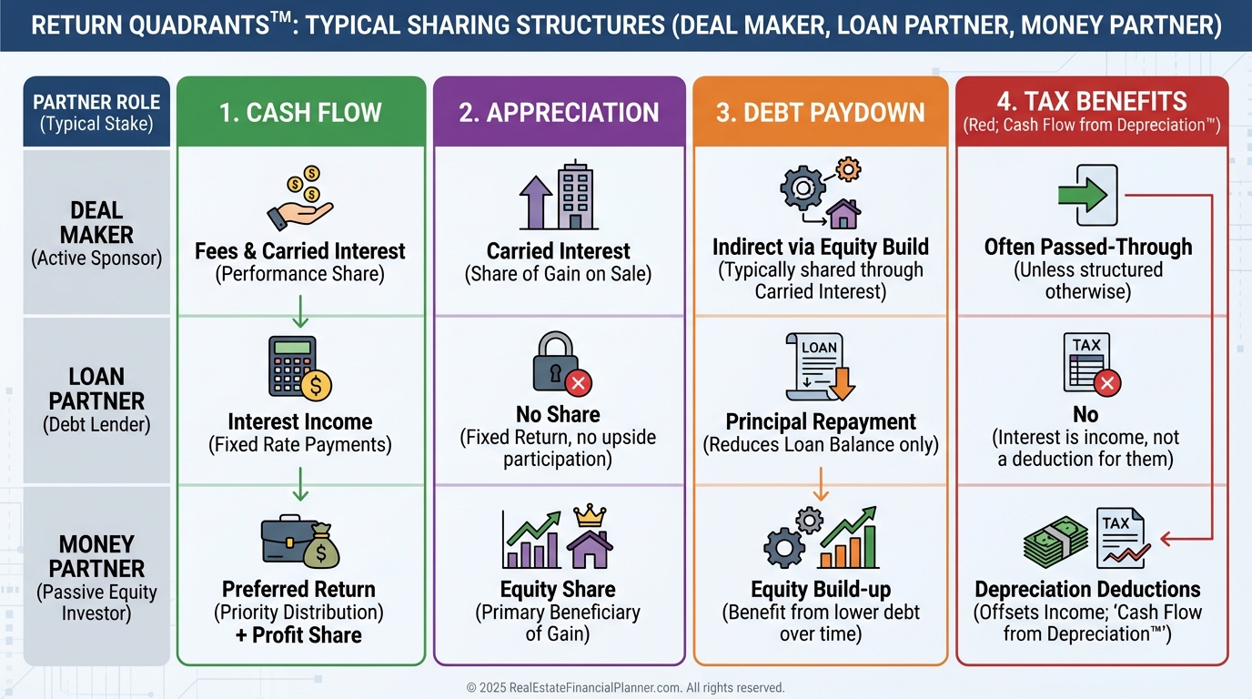 Money partners usually don’t get paid upfront; they receive preferred returns, profit splits, or both.