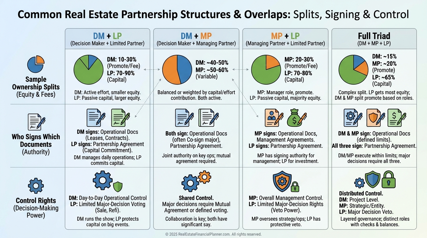 When I structure overlaps, I put clarity in writing: who commits cash, who signs, who controls, and who decides when to refi or sell.