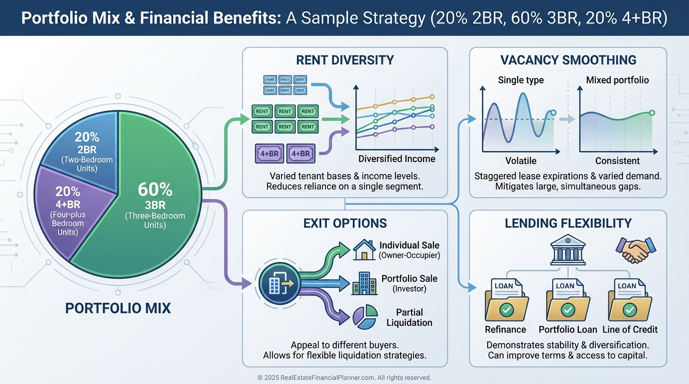 As you scale, diversify with a measured mix of 2-bedrooms and select 4+ bedrooms to smooth vacancy across tenant segments.
