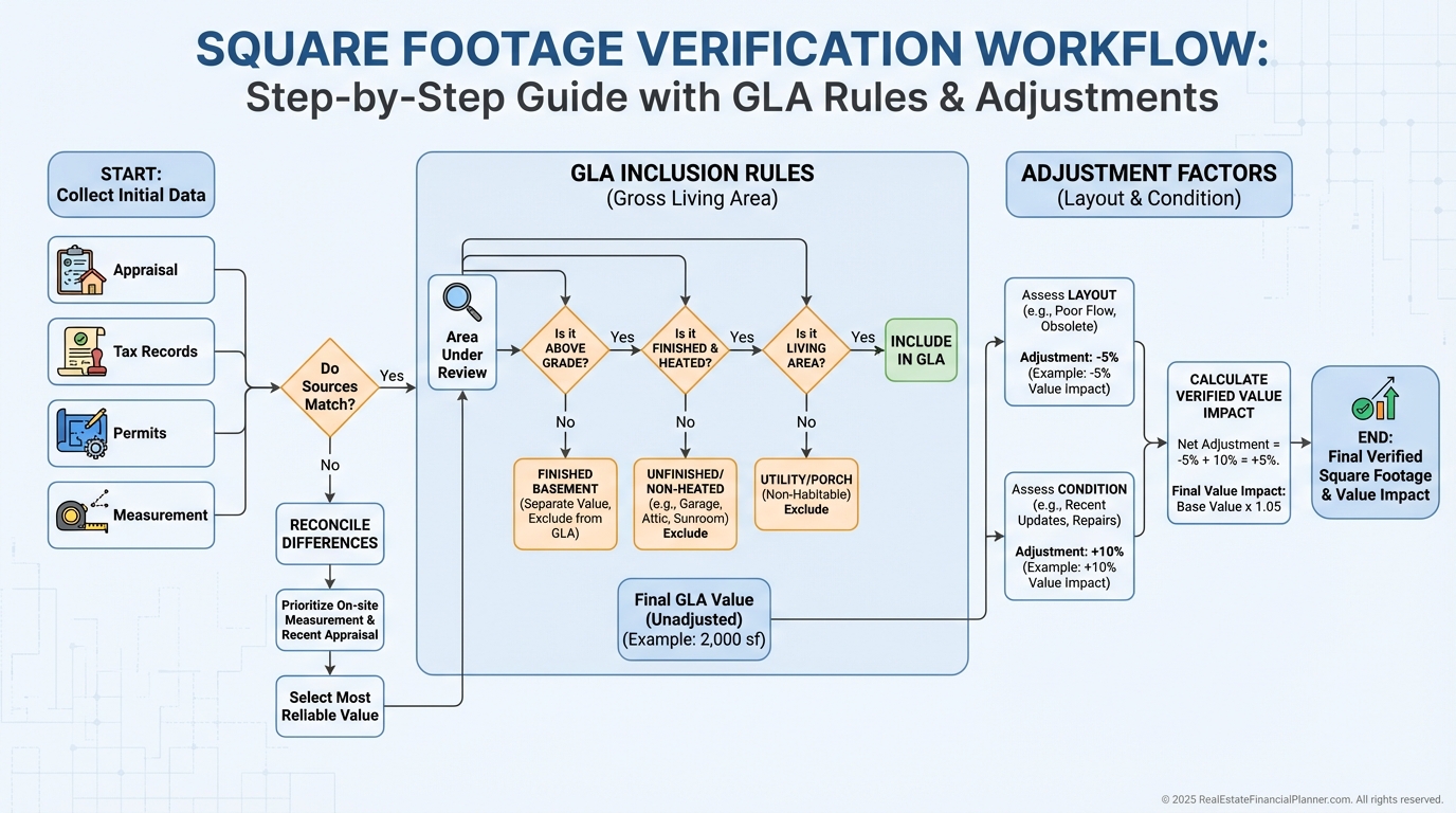 Marcus almost overpaid $30,000 for a duplex because the listing said 2,200 SF and tax records said 1,850 SF.
