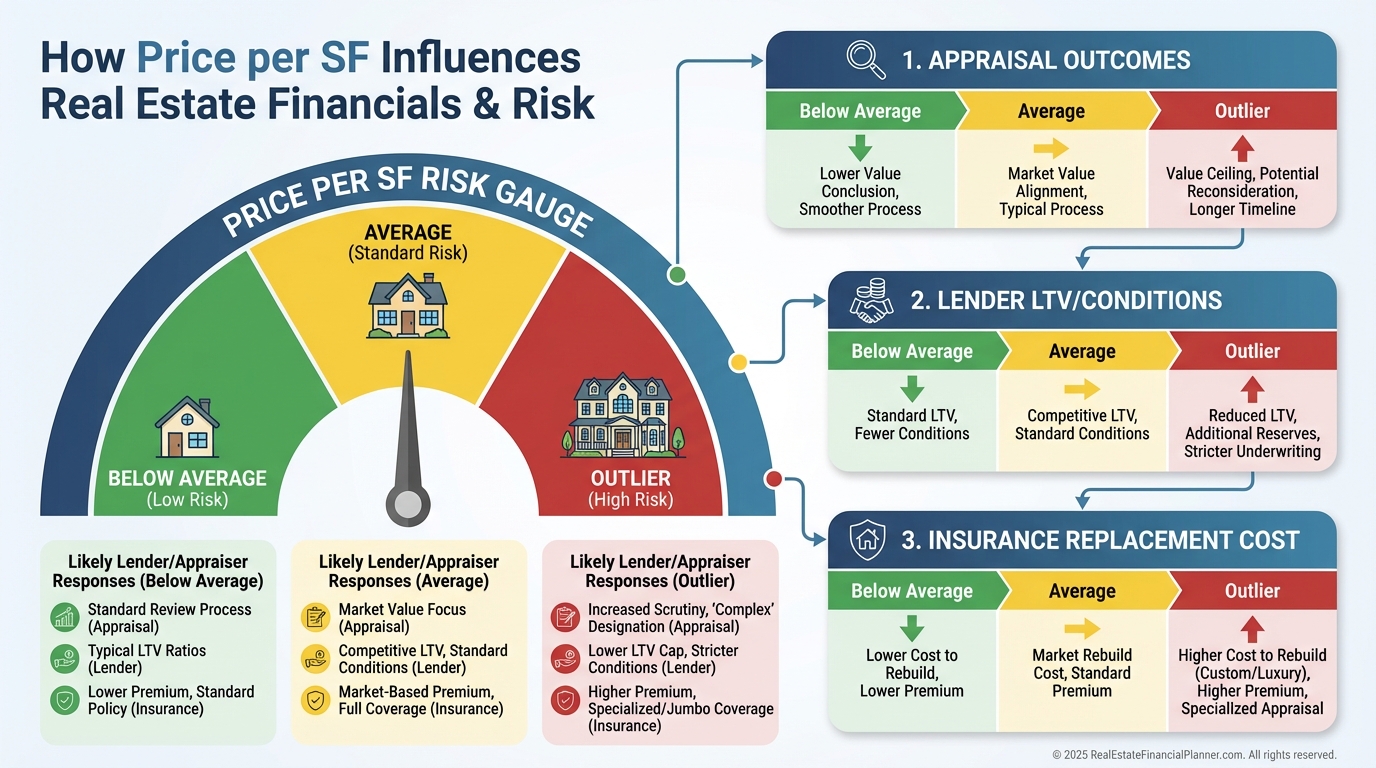 Above-average price/SF can trigger second appraisals or lower LTV.