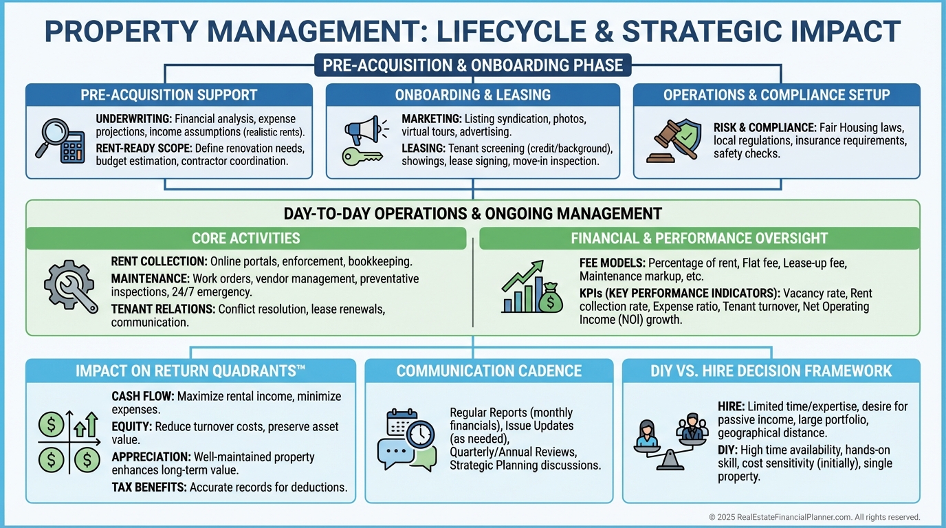 Daily, a PM screens tenants, enforces leases, collects rent, triages maintenance, and communicates with clarity.