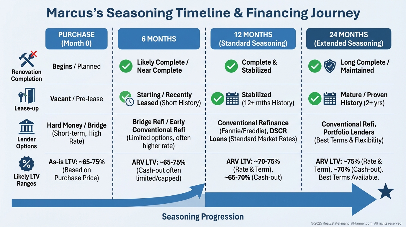 In BRRRR sequences, I align renovations to run concurrently with the seasoning clock, not after it.