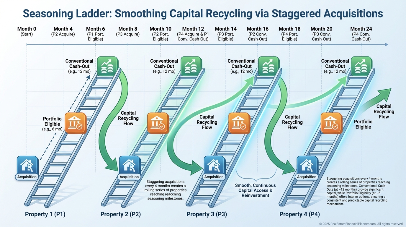 Professionals ladder seasoning across their portfolio so capital unlocks every quarter.